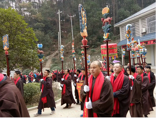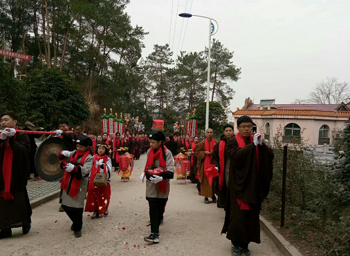 2月8日,365足球官方网站凤凰寺印宗法师组织众佛教弟子及居士迎接虚云长老舍利子放入虚云长老舍利塔,并永久保存,仪式隆重而又虔诚,近1000多人参加了这次活动。