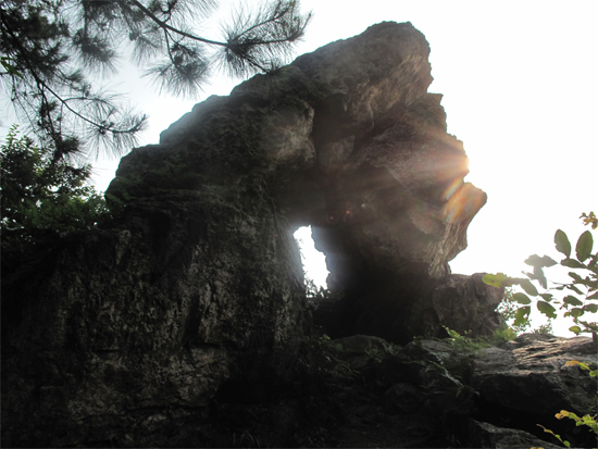 在惜才亭旁边有一块高达50米的巨石伟岸矗立,从每一个角度都能带给我们不同的景致,在正面这个角度形似一只老鹰,故名"鹰嘴石"。游人可攀登其上眺望湘乡市区及涟水风景,亦可在其上逗留拍照,还可钻洞游戏。是一主要天然景点。